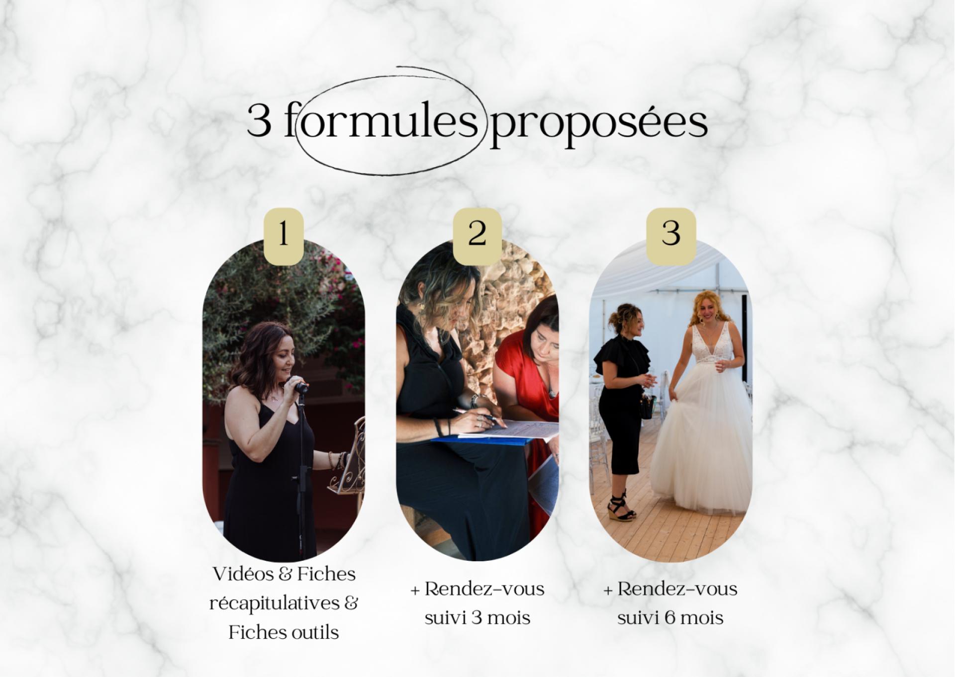 Pour que vous puissiez sélectionner votre accompagnement favori, votre Wedding Planner My Event’ by Jenny vous propose 3 formules différentes, qui vous guideront pour la création du plus beau jour de votre vie!
