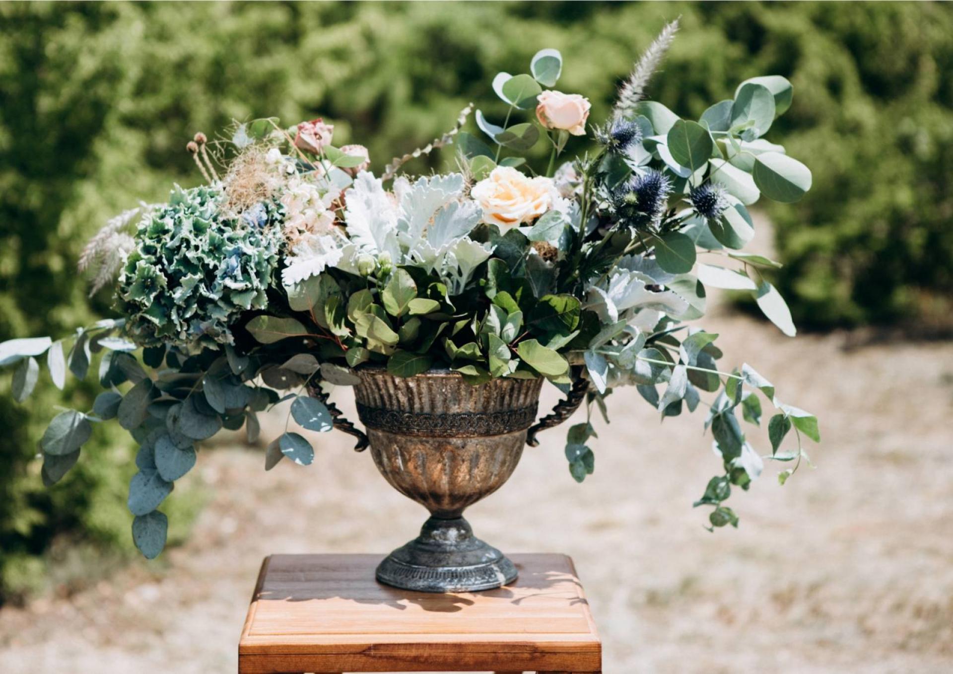 Nous vous proposons également une décoration à base de feuillage, qui est une belle alternative aux fleurs pour les plus réticents des compositions florales, pour un romantisme à l’américaine tout en légèreté.