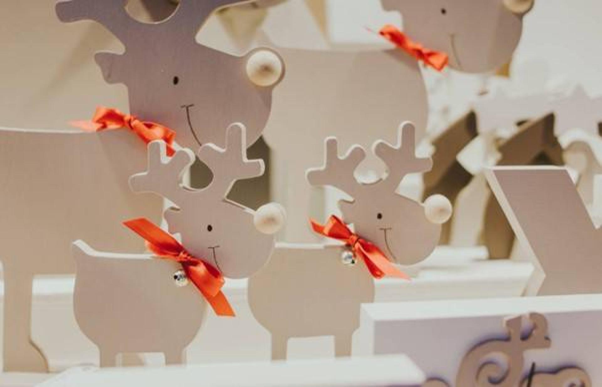 Nous utilisons subtilement les supports de décoration comme présentoir, comme le sapin ou le traîneau par exemple !