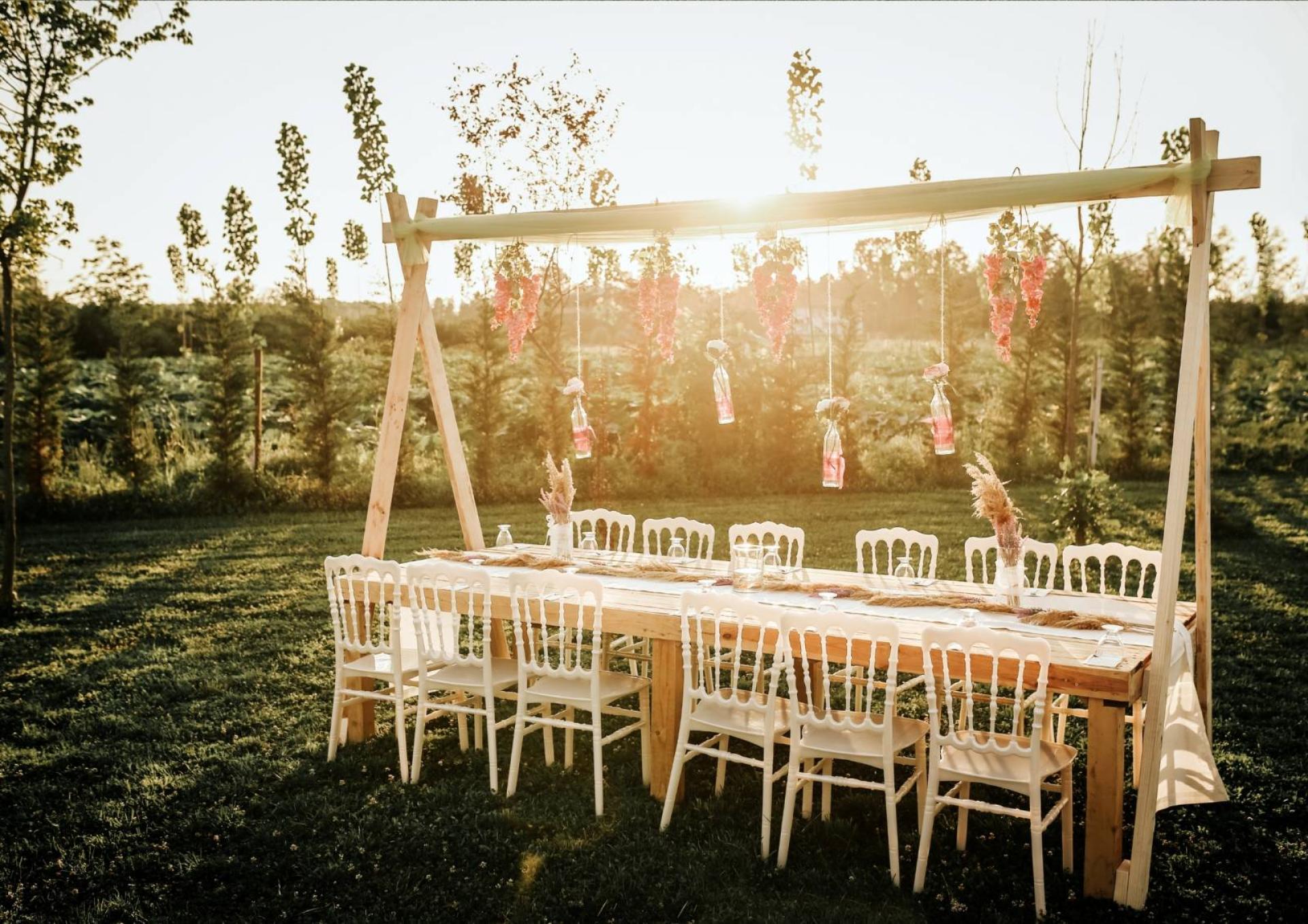 Toute l'implantation de votre dîner de mariage dépendra de l'espace dédié ! Si vous souhaitez dîner sous les arbres, il faudra par exemple s'assurer de la météo, et prévoir un Plan B !